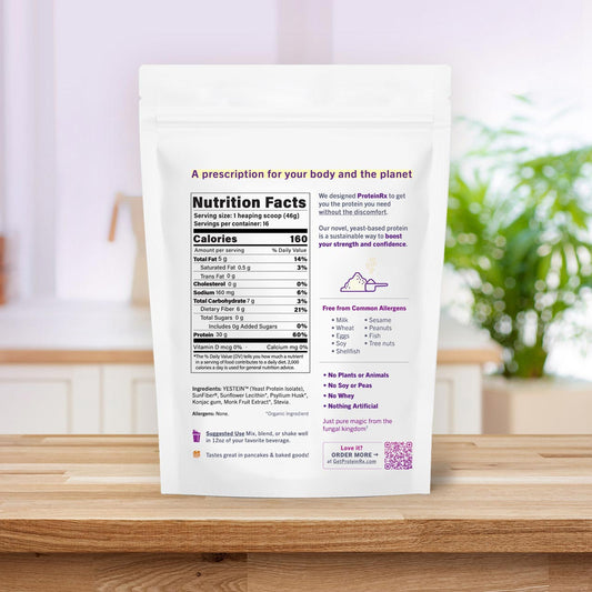 A new category of protein that redefines sustainability and nutrition. ProteinRx is a yeast-based, non-inflammatory, complete protein. Loved for versatility from pancakes to shakes.